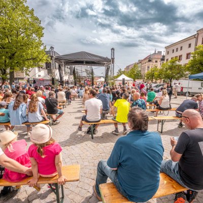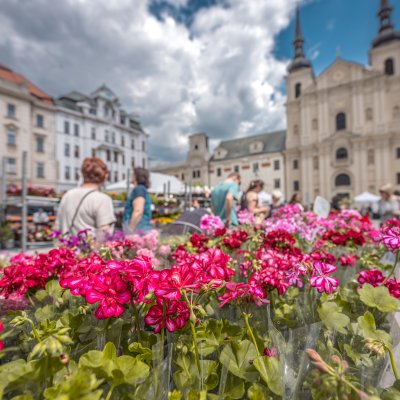 Na páteční májový jarmark dorazilo bezmála 50 stánkařů, kteří nabízeli květiny, keramiku, ručně vyráběné šperky a oděvy, přírodní kosmetiku, proutěné zboží i spoustu dobrot - frgály, trdelníky, ovčí sýry, sušené maso, koření, cukrovou vatu, koláčky, koktejly, ...